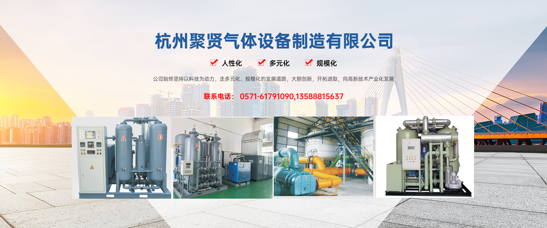 杭州聚賢氣體設(shè)備制造有限公司坐落在美麗的富春江畔,位于杭州富陽胥口工業(yè)園區(qū),處于杭州西湖與**名勝風(fēng)景區(qū)——千島湖之間,經(jīng)濟發(fā)達、交通十分便利。杭州聚賢氣體設(shè)備制造有限公司是一家以氣體凈化、分離、混合為專業(yè)的企業(yè)。注冊資金3000萬元,已通過ISO—9001質(zhì)量體系認證。公司始終堅持以科技為動力,走多元化、規(guī)模化的發(fā)展道路,大膽創(chuàng)新,開拓進取,向高新技術(shù)產(chǎn)業(yè)化發(fā)展。